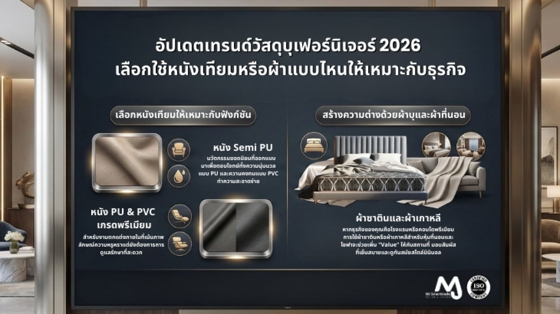 อัปเดตเทรนด์วัสดุบุเฟอร์นิเจอร์ 2026: เลือกใช้หนังเทียมหรือผ้าบุ แบบไหนให้เหมาะกับธุรกิจ