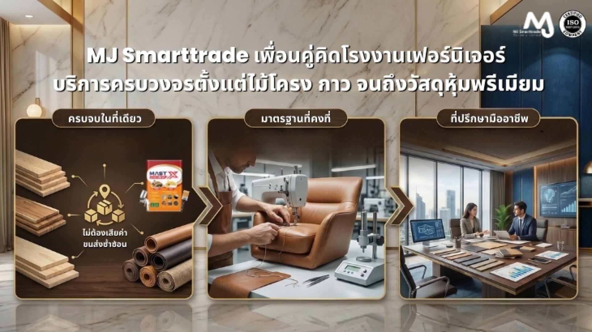 MJ Smarttrade เพื่อนคู่คิดโรงงานเฟอร์นิเจอร์: บริการครบวงจรตั้งแต่โครงไม้เฟอร์นิเจอร์ กาว จนถึงวัสดุอุปกรณ์ หุ้มโซฟาและเฟอร์นิเจอร์